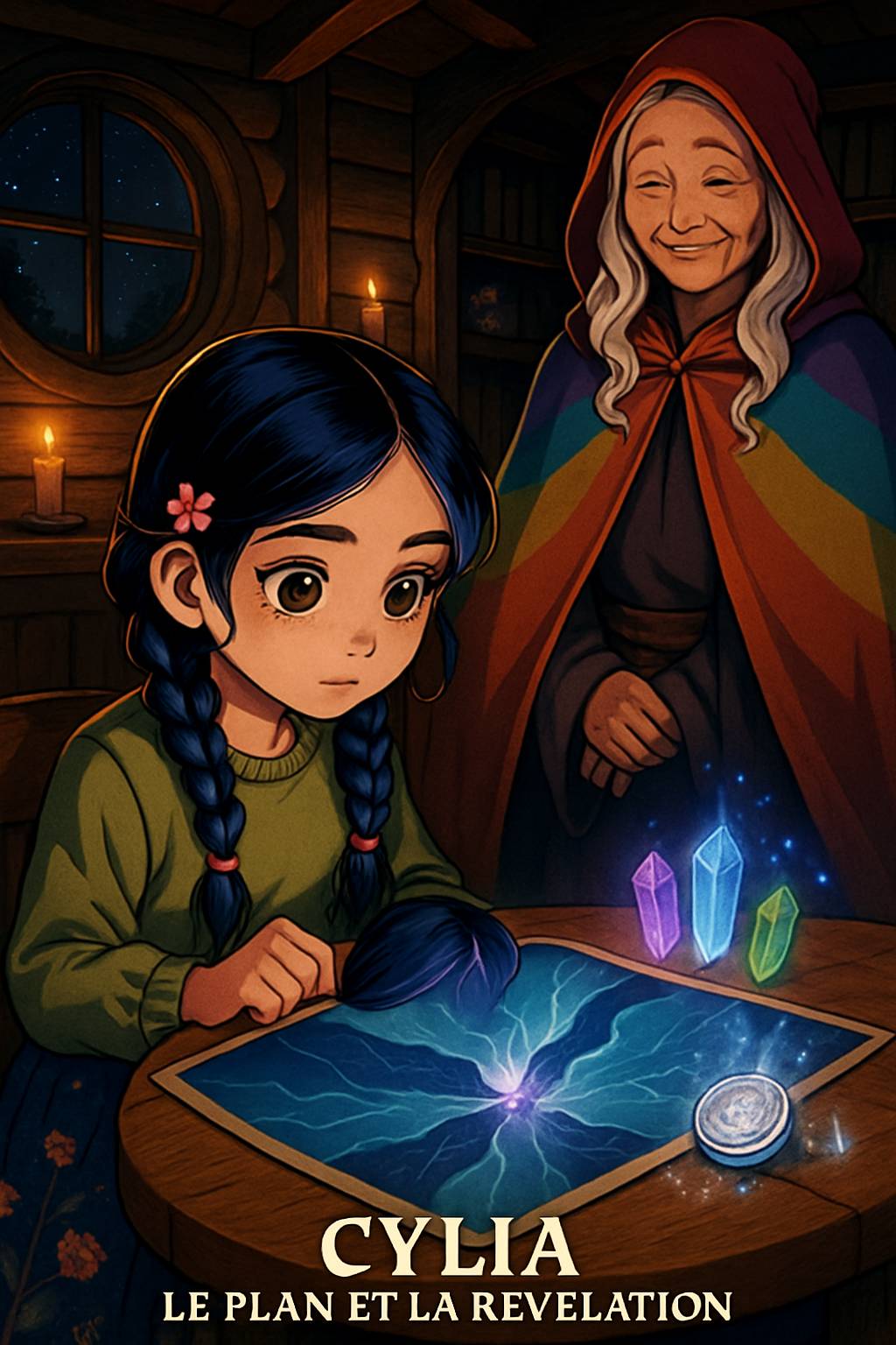 Leur quête les mena à travers des parties de la vallée que Cylia n’avait jamais explorées : une grotte aux cristaux chantants, un bosquet d’arbres dont les feuilles changeaient de couleur à leur passage, une petite cascade qui semblait couler à l’envers. À chaque étape, le Localiseur brillait plus fort, les guidant toujours plus loin.