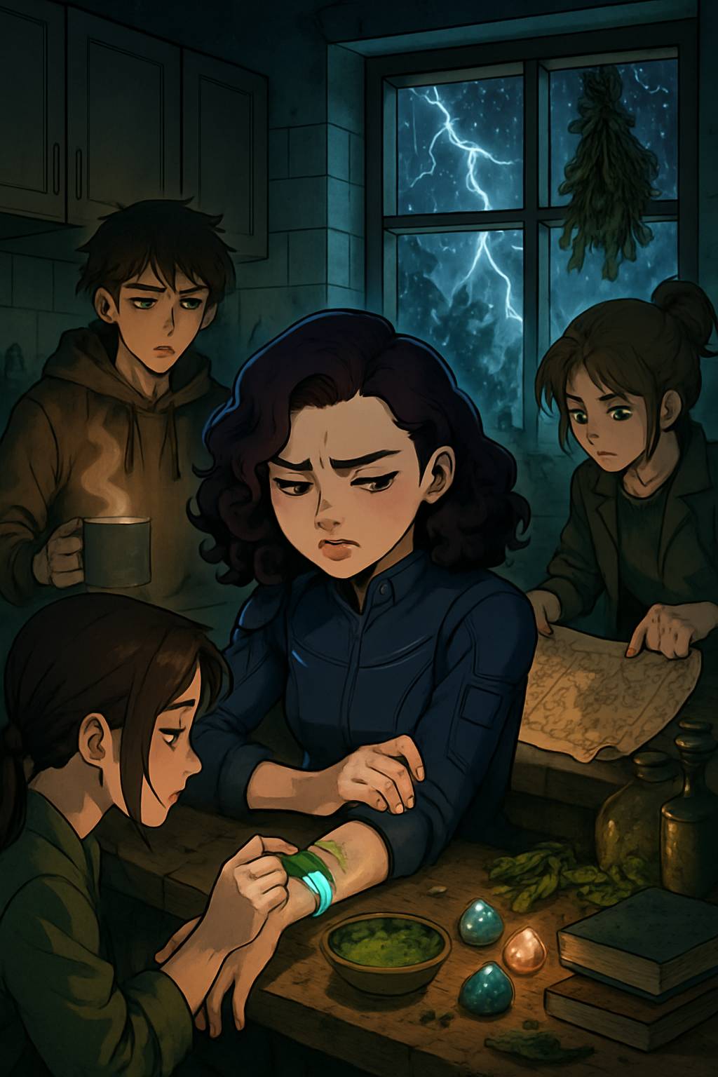La douleur était insupportable. Sélina gémit alors que Luis appliquait une pâte verdâtre à l’étrange marque noire qui s’étendait maintenant de son poignet jusqu’à son coude. La substance dégageait une odeur forte d’herbes et de sel marin, mais apportait un soulagement immédiat là où elle touchait sa peau.